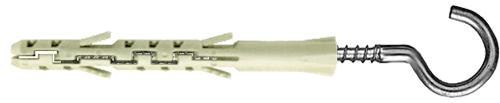Dybel nylonowy z przedłużoną strefą rozporową do materiałów lekkich i otworowych , hak sufitowy (otwarty) , ocynkowany ,