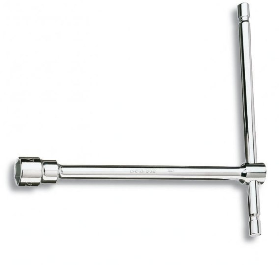 Beta Klucz nasadowy typu T 17mm to klucz w kształcie litery T zakończony nasadką sześciokątną do przykręcania i dokręcania trudno dostępnych śrub i nakrętek. Klucze nasadowe wykorzystywane są, gdy nie ma miejsca na poziome odkręcenie śrub i nakrętek. Prosty kształt klucza z przesuwaną przetyczką sprawia, że odkręcanie i przykręcanie jest szybkie i łatwe nawet w niewielkich przestrzeniach. Klucz nasadowy firmy Beta został wykonany zgodnie z normą UNI 6742 i DIN 3112.