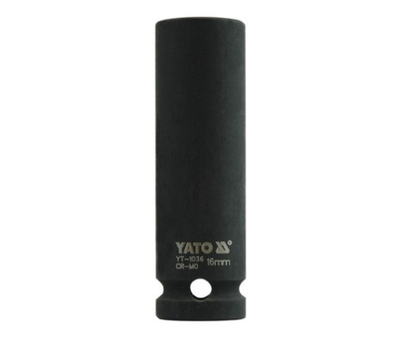 Specjalistyczne nasadki udarowe, współpracują z urządzeniami pneumatycznymi, które pracują w bardzo ciężkich warunkach pod zmiennymi obciążeniami. Nasadki wykonano ze stali chromowo molibdenowej CrMo SCM-440, która gwarantuje długą żywotność przy pracy w cyklach ok. 5000 udarów na minutę. Stal CrMo SCM-440 to unikalna stal stopowa, która posiada 2 krotnie wiekszą wytrzymałość na rozciąganie od zwykłej stali węglowej oraz 3 krotnie wyższą granicę plastyczności. Te cechy powodują, że nasadki YATO przez wydłużony czas zachowują swój nominalny wymiar oraz nie pękają pod wpływem pracy udarowej. Nasadki szczególnie polecane do profesjonalnych serwisow ogumienia oraz samochodowych, posiadają długośc 78 mm.