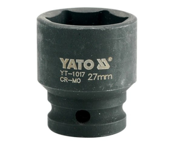 pecjalistyczne nasadki udarowe, współpracują z urządzeniami pneumatycznymi, które pracują w bardzo ciężkich warunkach pod zmiennymi obciążeniami. Nasadki są kompatybilne z kluczami o przekroju trzpienia 3/4". Nasadki wykonano ze stali chromowo molibdenowej CrMo SCM-440, która gwarantuje długą żywotność przy pracy w cyklach ok. 5000 udarów na minutę. Stal CrMo SCM-440 to unikalna stal stopowa, która posiada 2 krotnie wiekszą wytrzymałość na rozciąganie od zwykłej stali węglowej oraz 3 krotnie wyższą granicę plastyczności. Te cechy powodują, że nasadki YATO przez wydłużony czas zachowują swój nominalny wymiar oraz nie pękają pod wpływem pracy udarowej. Nasadki szczególnie polecane do profesjonalnych serwisow ogumienia oraz samochodowych, posiadają długośc 90 mm.