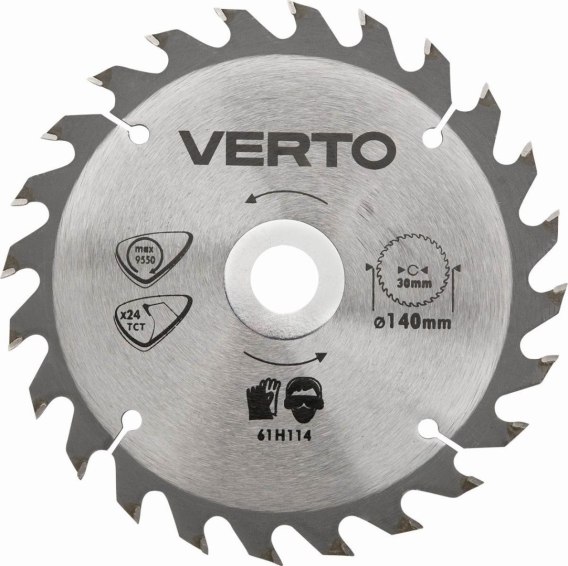 Tarcza do pilarki widiowa VERTO (nr ref. 61H128) o średnicy zewnętrznej 200 mm, o zredukowanej grubości dysku, pozwala uzyskiwać wyższą prędkość cięcia. Zęby z nakładkami z węglika spiekanego YG8A pozwalają na zgrubne cięcie drewna i materiałów drewnopochodnych, takich jak sklejka, płyta wiórowa, MDF. Zawarte w opakowaniu pierścienie redukcyjne umożliwiają zastosowanie tarczy do większości modeli pilarek. Marka VERTO oferuje asortyment elektronarzędzi i akcesoriów dla każdego majsterkowicza.