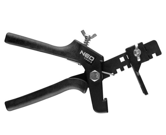 Pistolet do systemu poziomowania NEO (nr ref. 61-104) przeznaczony jest do poziomowania układanych płytek ceramicznych. Współpracuje z systemem do poziomowania płytek Neo wykorzystującym kliny montażowe. Pistolet w kontrolowany sposób wciska kliny w element unoszący równocześnie narożniki czterech sąsiadujących płytek.