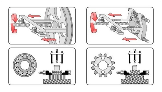Ułatwia demontaż kół zębatych, łożysk, tarcz hamulcowych oraz innych elementów ciasno pasowanych na różnego rodzaju osiach.