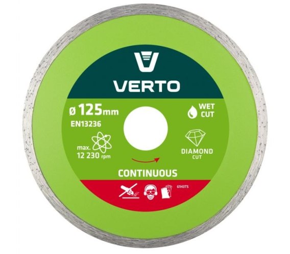 Tarcza diamentowa pełna VERTO (nr ref. 61H3T5) o średnicy zewnętrznej 125 mm, przeznaczona do precyzyjnego cięcia elementów ceramicznych, takich jak terakota, gres, granit, marmur.